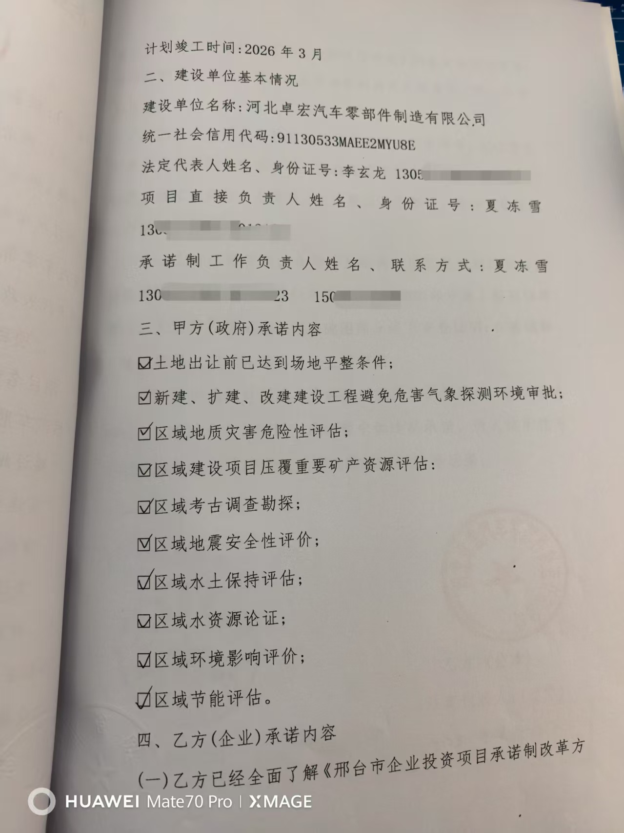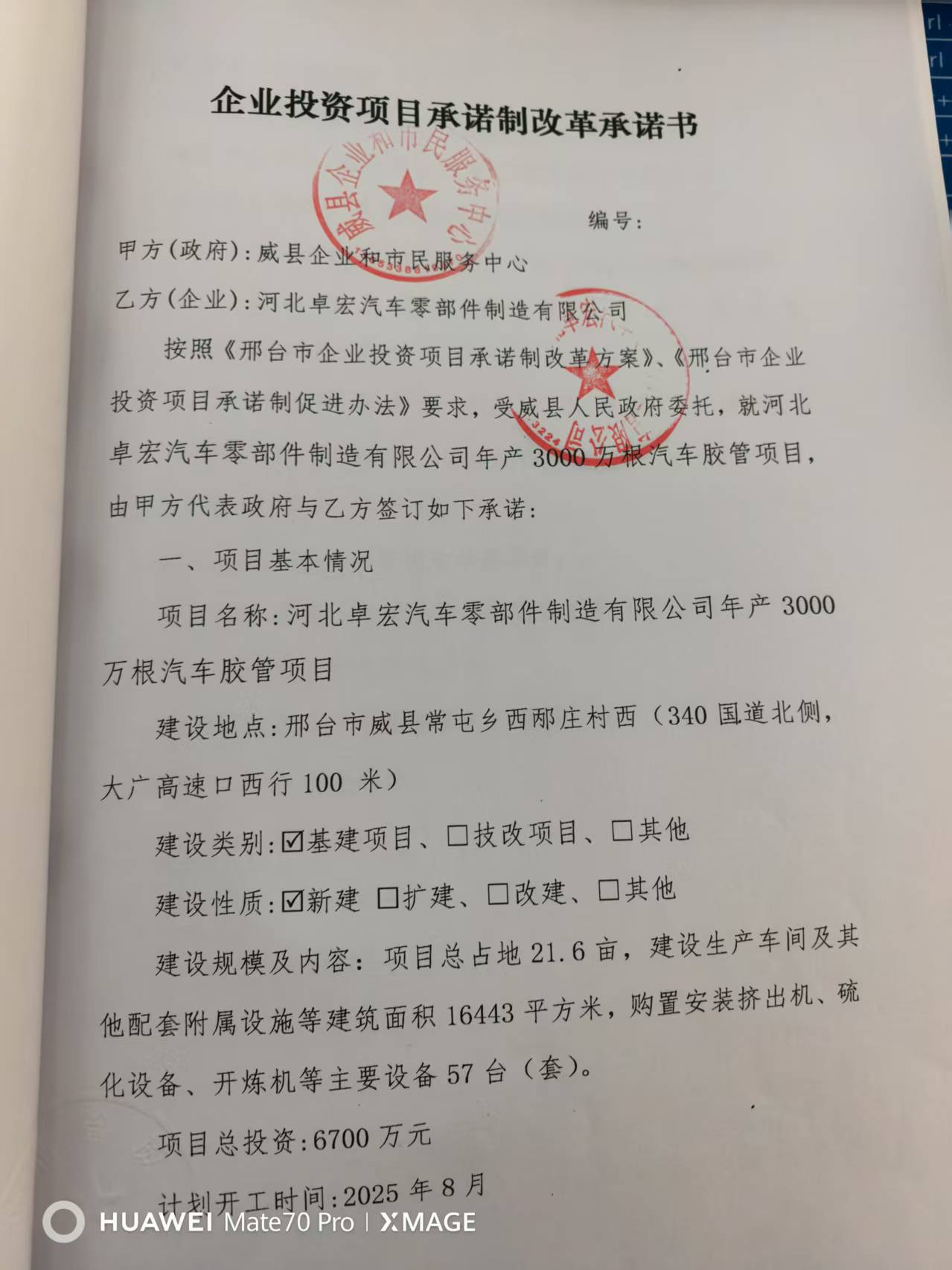 河北卓宏汽车零部件制造有限公司企业承诺制承诺书公证