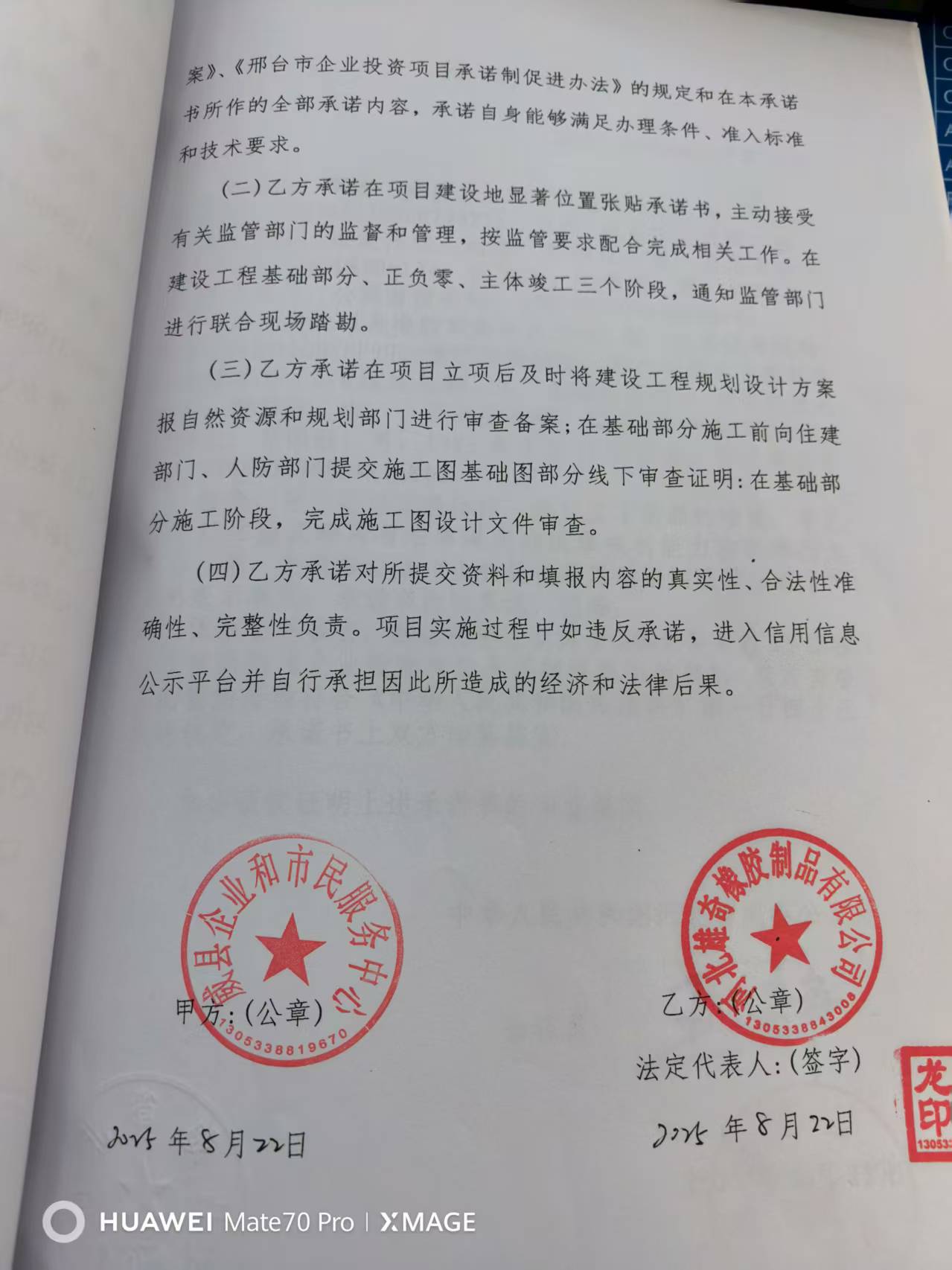 河北雄奇橡胶制品有限公司企业承诺制承诺书公证